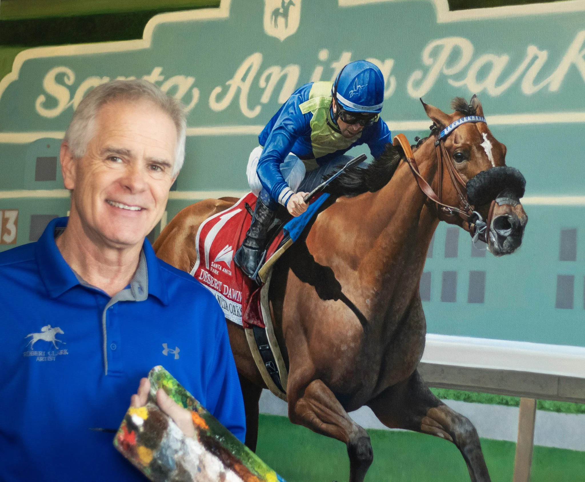 A lifetime of drawing and painting has established Robert Clark as an elite equestrian artist. His artwork is displayed in the homes and farms of prominent owners and successful trainers across the globe. Over the past two decades, Robert has enjoyed painting many of the world’s most famous horses. He has developed a following among art enthusiasts, racing fans, and horse lovers everywhere. Whether painting live at a black tie event or in his studio Robert’s mastery as a painter and his passion for horse racing combine to create canvases that freeze a winning moment into a timeless masterpiece.